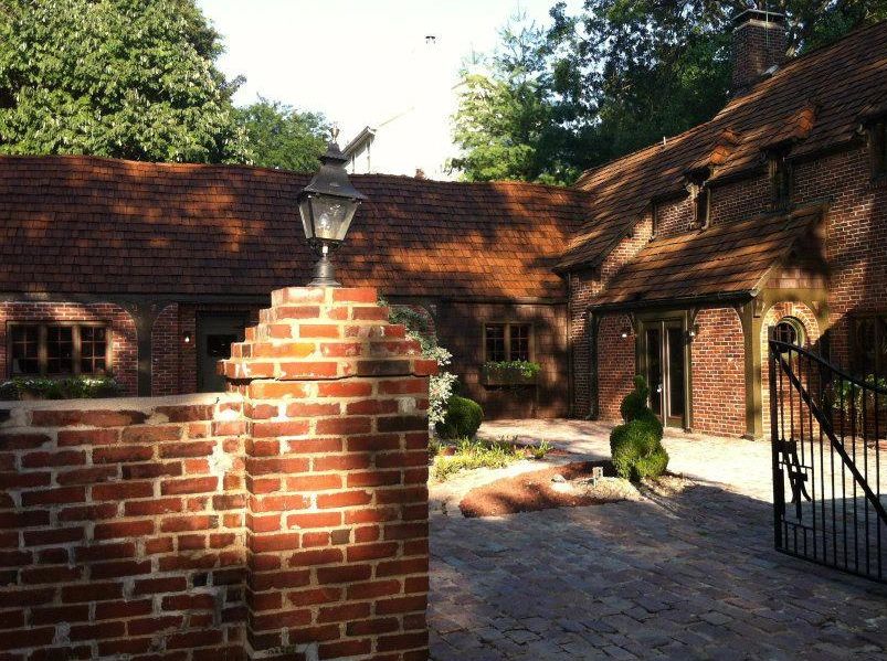 The vaulted family room was construction from a portion of the original carriage house and stables. The house was designed around a large 70ft x 52ft center cobblestone courtyard that is ideal for entertaining.